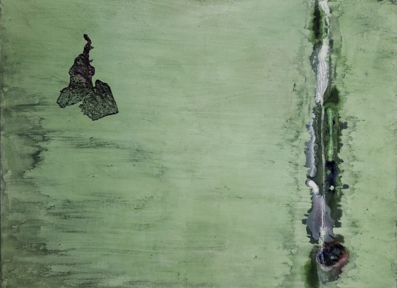 “Storm” Ink, salts, acrylic, oil on canvas, 40″ x 16″ “Bandaged City”, plaster cast, oil, salt on canvas, 34″ x 14″; Selected for a 2022 Chicago juried show “Hidden Costs of War”“Our Delicate Boat”, Ink, acrylic, latex, salt, powder on canvas 26″ x 20″ framed“Green Wind and River”, oil, collage, ink, salts, watercolor, acrylic on canvas, 40″ x 30″